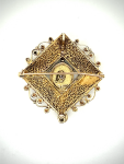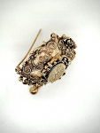 Go back in time with this vintage 14 karat yellow gold broach. Laced with intricate swirls and a beautiful diamond, this piece weighs 8.4 DWT and measures 10x36x47 mm.