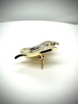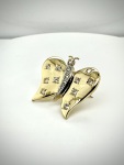 Protect local pollenators with this 18 karat yellow gold diamond butterfly brooch! This piece weighs an impressive 7 DWT and poses brilliantly with a 33 mm wingspan. Buy yours today!