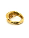 This 22 karat yellow gold ring is no joke! at 5 DWT it boasts a sizable weight and its stark yellow gold coloration make it a striking addition to any collection. its unique structure also makes it incredibly easy to size in the case of a misfit. take it home with you today!