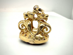 Display a vintage, firey frolic with our 18kt twin dragon watch fob/charm with an oval created sapphire. This piece weighs a hefty 9.1 DWT and is of considerable stature and elegance. It was likely produced to be worn as a watchfob but may also double as a pendant or bracelet charm. Take it home today!